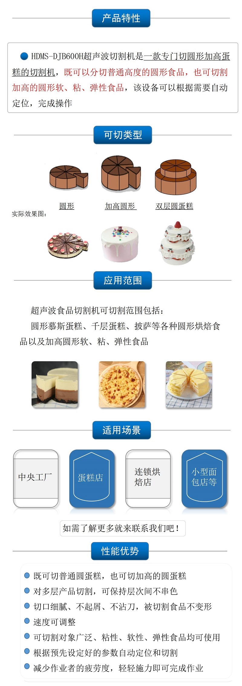 該設(shè)備配備單把超聲波刀片,可切圓形(只限一個圓蛋糕),也可切方形 |