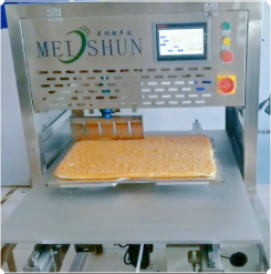 Ultrasonic cutting machine uses high-frequency vibration to carry out cutting work. The equipment realizes friction-free and pressure-free cutting mode. Meishun Machinery can provide a complete set of cutting solutions for bakeries of any size, and can customize each machine according to customer needs.