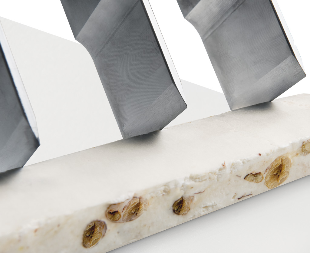 Cutting range is wide. Sticky, soft and elastic food can be used.