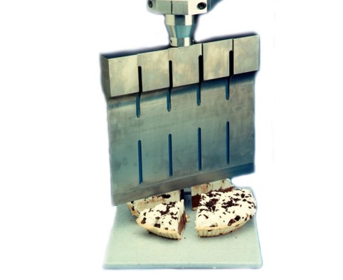 Ultrasound food cutting machine is a kind of ultrasonic equipment specially used for cutting. Ultrasound is loaded on the cutting blade. Which results in the ultrasonic vibration on the blades and play a cutting effect. Its biggest character is that it cuts without using the blade edge. Or to say, it doesn’t use the traditional edges of knives to cut. While it use the ultrasonic vibration to cut the food. Making the cutting surface neat and beautiful, unchangeable, no chip, no sticking knife, improving cutting efficiency, holding by hand on a single machine and carrying easily. The effective cutting height of the equipment is over 100 mm, which can meet the needs of different customers and is favored by customers with higher food thickness.